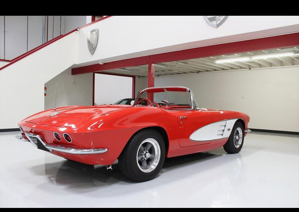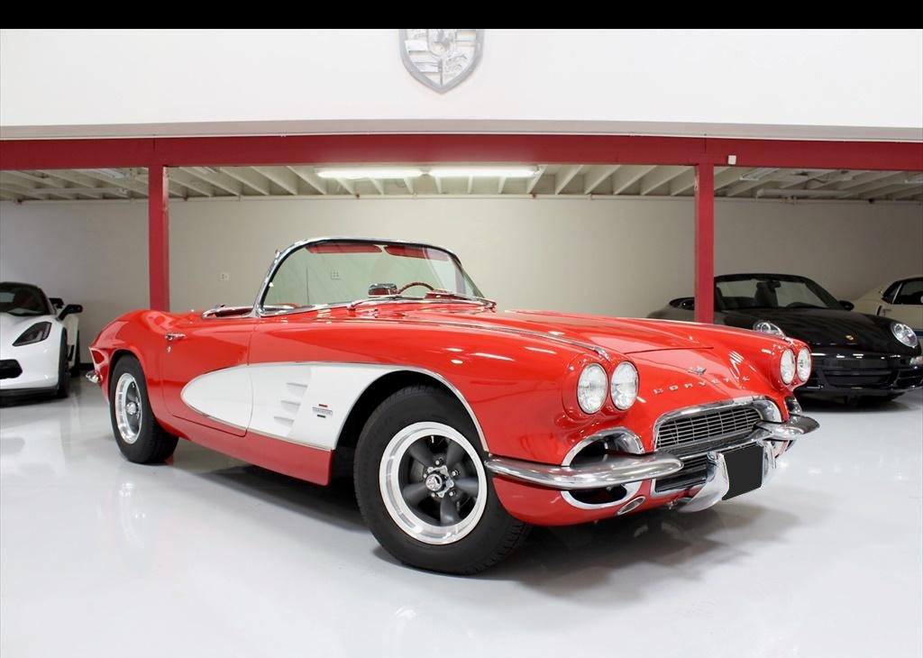 1961 Chevrolet Corvette in Roman Red over Red Interior. Equipped with a 327ci Engine mated to a Muncie 4-Speed Manual Transmission. Just 5k miles since restoration and rebuilt engine. Fresh paint job within the last 3 years. Brand new convertible top just installed. Vintage Air A/C blows cold. SSBC Disc brakes in the front. Aluminum radiator. Hurst shifter. AM/FM Radio, 6-Disc CD changer, and Sirius XM Radio. Two sets of wheels included; American Racing 15" wheels and stock wheels with hubcaps and white wall tires. This incredible Corvette runs and drives as good as it looks.
