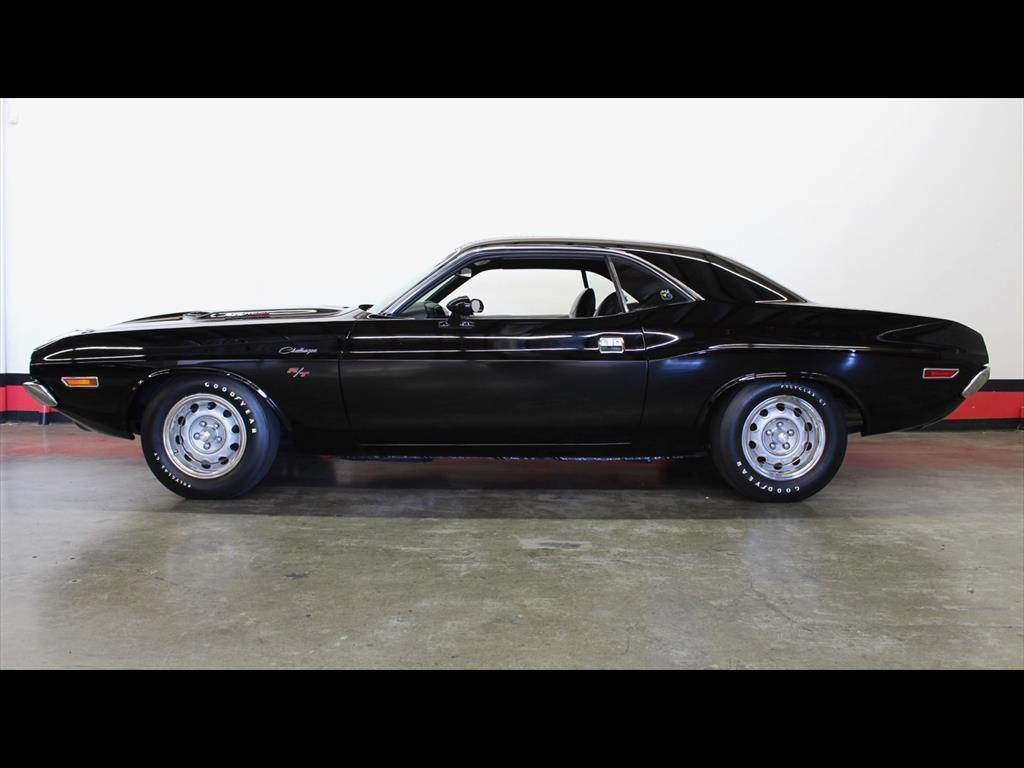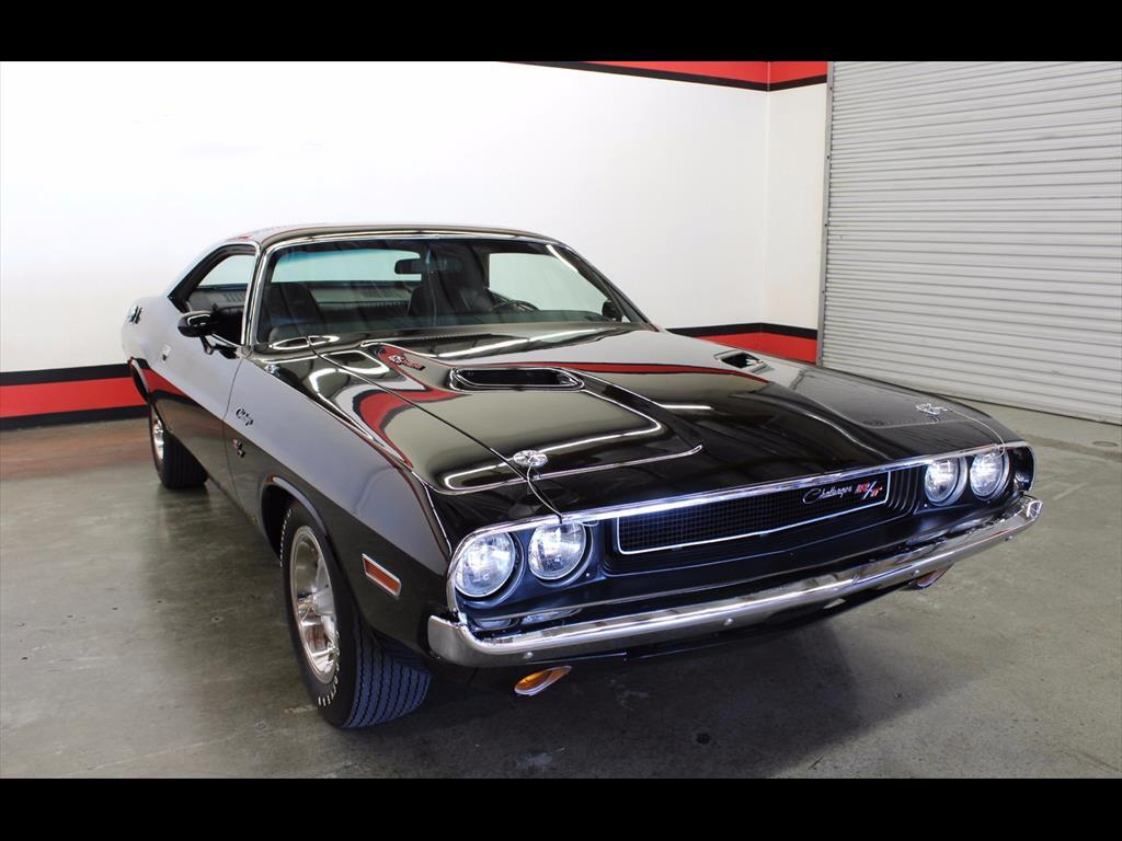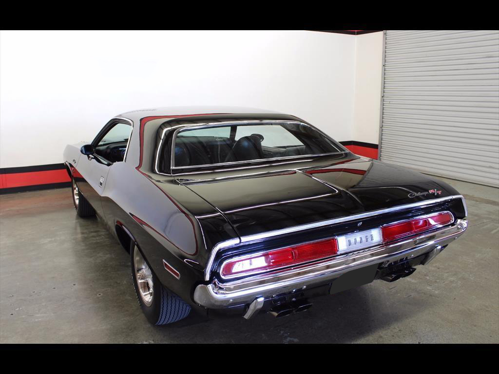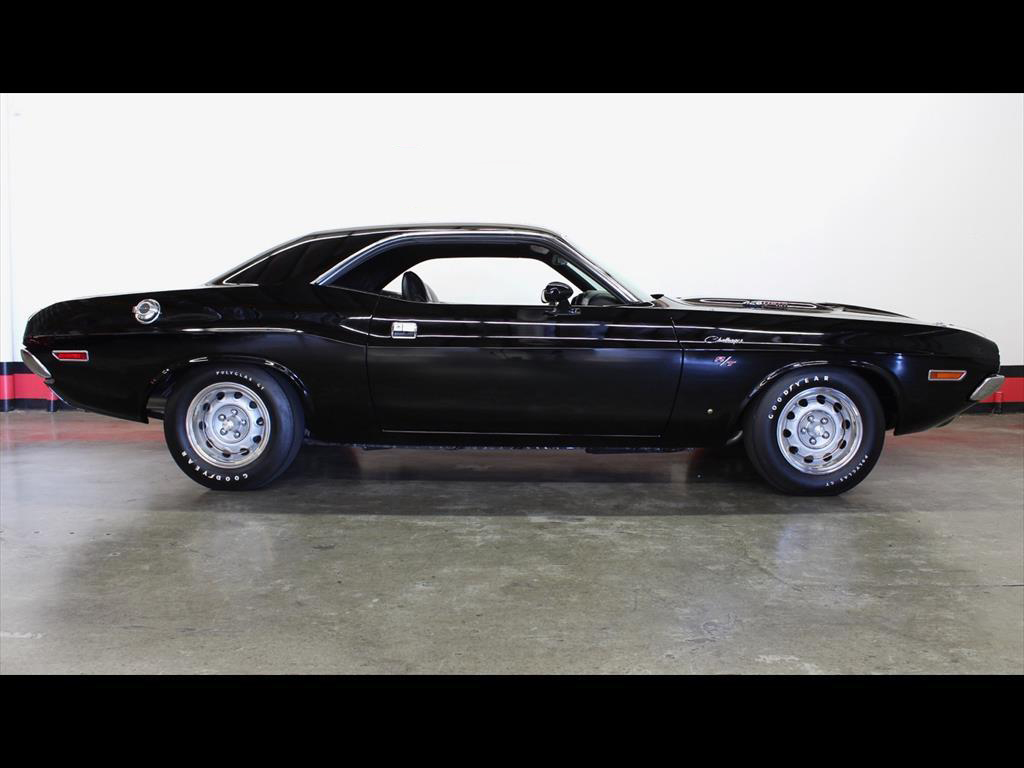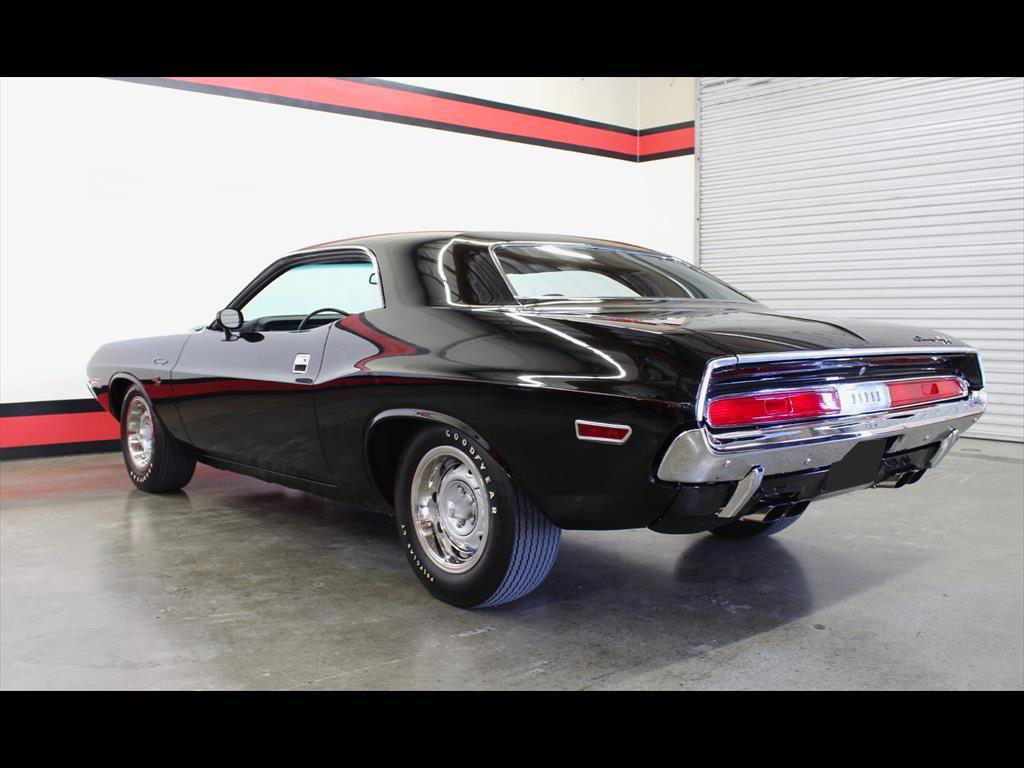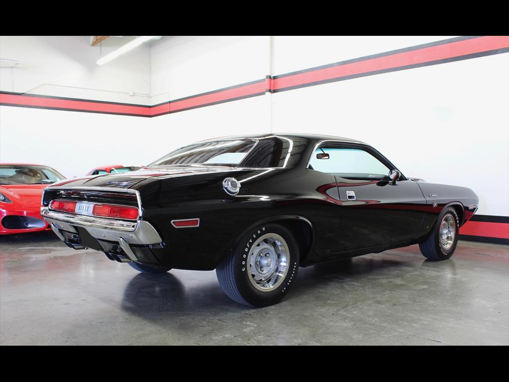 1970 Dodge Challenger R/T in Black Velvet over Black Interior. Equipped with a 440ci V8 Engine mated to a 4-Speed Manual Transmission. A beautiful restoration from the ground up, this car looks better than the day it rolled off of the showroom floor. Show quality body and paint. This is a rare and desirable car, a true U code 440 Magnum R/T that came from the factory Black on Black with 4-Speed transmission and Dana 60 rear axle with 3:54 gears. Estimated to be 1 of 25 such cars to be produced. It is also presumed to be 1 of 100 Black R/T's produced. This special car was featured in an official Dodge commercial, to promote the new Hemi Challenger when it was released in 2012, this is the reasoning for the 426 Hemi emblems on the hood, as in the commercial the car transforms from a 1970 Hemi Challenger into the new Hemi Challenger. Hurst pistol grip shifter, High grade interior with black vinyl bucket seats, Track Pack axle package, Rallye Instrument cluster, Power brakes, Center console with woodgrain, Sport hood, Dual exhaust, Tachometer, and 8-track AM radio.